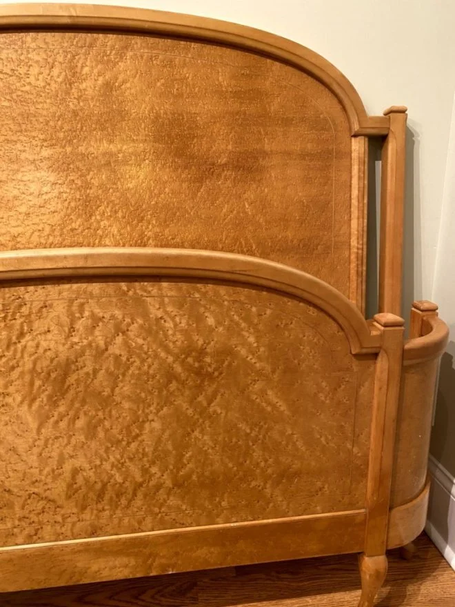 Vintage, American, with headboard, footboard, sides and slats, in very good condition, with subtle string inlay outline.
